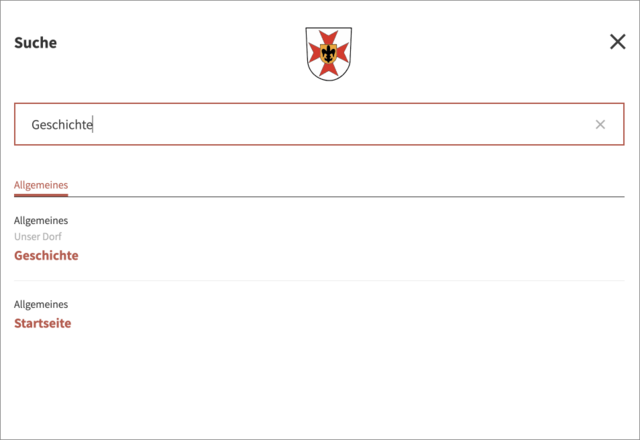 Oben in der Mitte der Internet·seite ist das Wappen zu sehen.